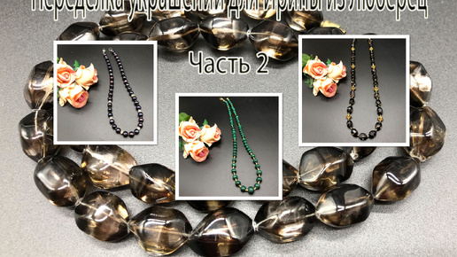 Три пары бус. РАУХТОПАЗ. МАЛАХИТ. ЖЕМЧУГ. Переделка украшений для Ирины из Люберец. Часть 2.