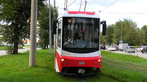 Трамвай Екатеринбурга УТМ 71-407-01 борт. №034 маршрут 2 следует по проспекту Космонавтов