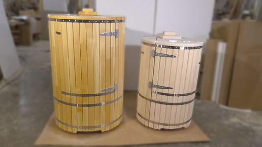 Видеообзор кедровой круглой фитобочки уменьшенного размера, покрытой OSMO