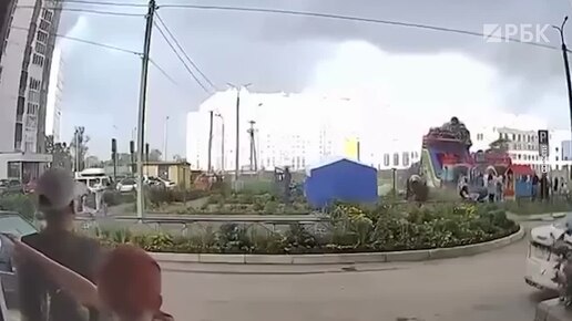 Надувной батут с детьми опрокинулся из-за мощного ветра в Уфе