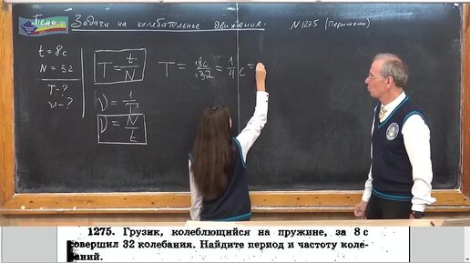 Задача на определение частоты и периода колебаний грузика, колеблющегося на пружине