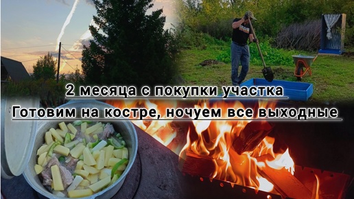 ДВА МЕСЯЦА С ПОКУПКИ ДАЧИ, ГОТОВИМ В КАЗАНЕ НА КОСТРЕ СТРОИМ БЕСЕДКУ И ГРЯДКИ