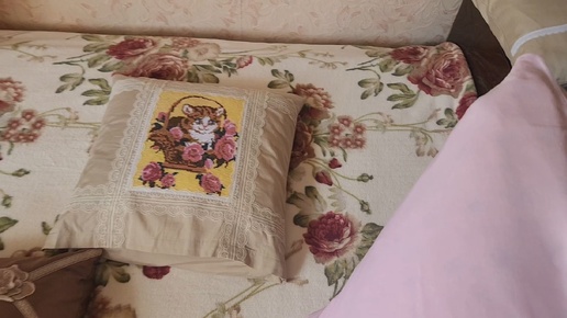 Подушки на кровати и картины с вышивкой на стенах у мамы#вышивкакрестиком#картины#подушки