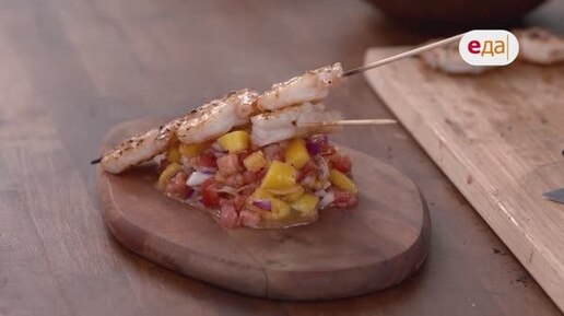Шашлычки из тигровых креветок с соусом чатни | На гриле