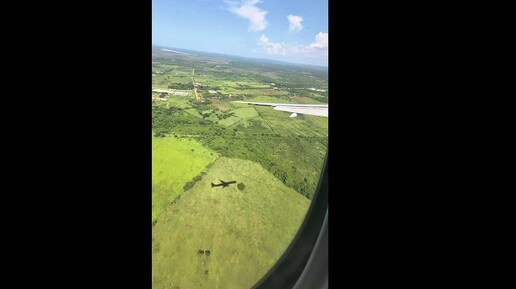 Тень самолета Boeing 777-300 при заходе на посадку в аэропорт Варадеро (Куба)