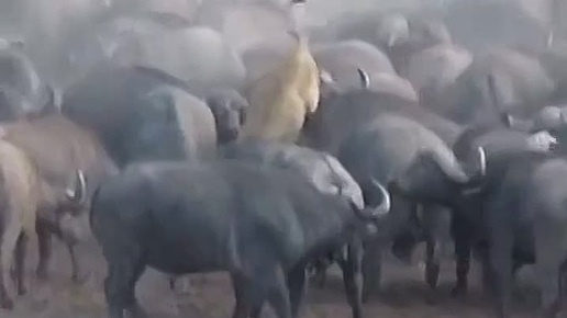 Лев решил напасть на буйвола посреди его стада, и это было большой ошибкой – видео