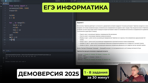 Подготовка к ЕГЭ 2026. Демоверсия ЕГЭ по информатике 2025. Задания 1 - 8 за 30 минут