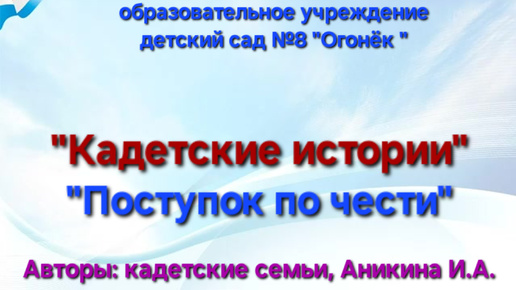Анимационная студия "Кадетские истории". Мультфильм "Поступок по чести"