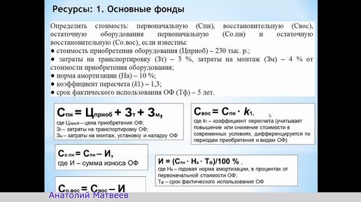 Осноные фонды - Решение задач