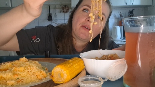 Мукбанг кус кус с овощами, интересный салат с паприкой | Посидим, поговорим #мукбанг #фудблогер
