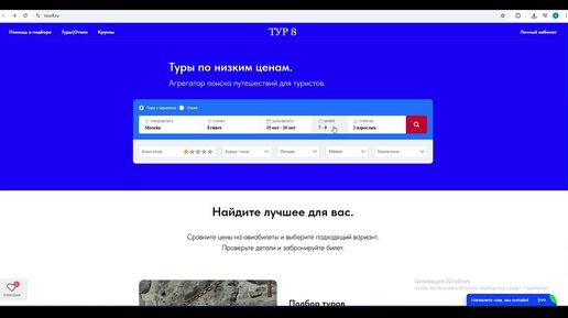 Как пользоваться агрегатором поиска туров на сайте Тур8.
