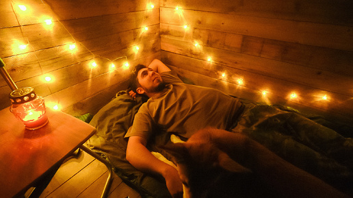 Ночевка с Пёселем в недостроенном каркасном доме. Ужин на печи.