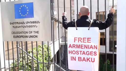 Приковал себя наручниками к воротам офиса ЕС в Ереване: Ашотян выразил свой протест европейцам из-за их молчания по поводу пленных в Баку