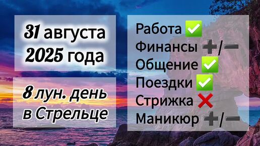 Лунный день 31 августа 2025 года