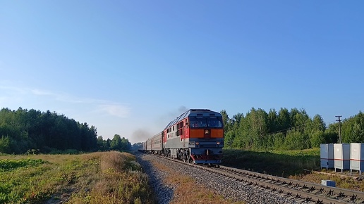 Трёхголосый ТЭП70-0042 с пассажирским поездом №053Я Усинск-Сыктывкар "Дневной экспресс" и приветливой бригадой