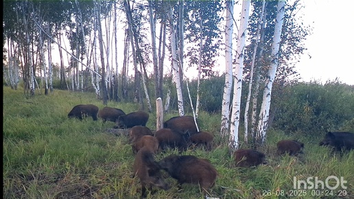Много кабанов. Самцы Сибирской косули во время гона. Молодой барсук.