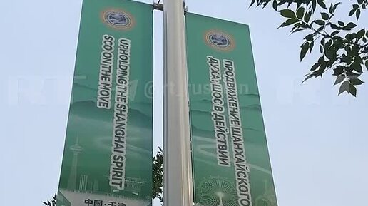 Надписи на русском языке появились в китайском городе Тяньцзинь перед саммитом, где соберутся лидеры более 20 стран