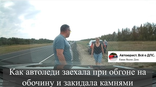 Как автоледи заехала при обгоне на обочину и закидала камнями