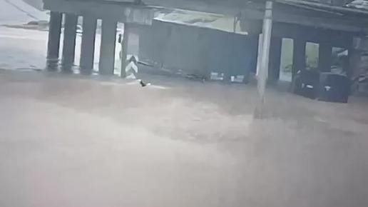 После ливня в Череповце водитель пытается доплыть до своего фургона