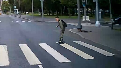 Мальчик на роликах едва не попал под автомобиль в Москве, выехав на дорогу на красный свет. Водитель с трудом успел затормозить