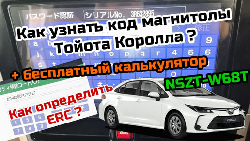 Код магнитолы #Тойота Королла (#TOYOTA COROLLA) Японская магнитола NSZT-W68T +бесплатный калькулятор