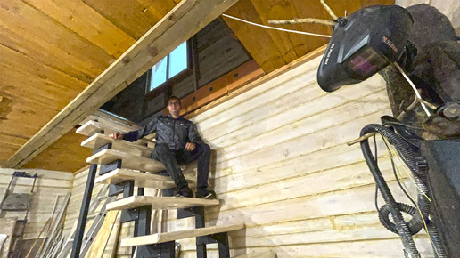 Смонтировали лестницу на 2 этаж мастерской. Настелили пол в будущей мансарде. «Скворечнику» быть!