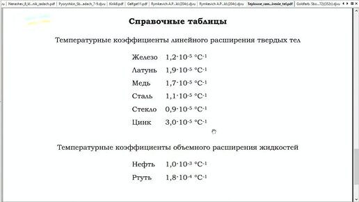 Коэффициенты объемного расширения различных жидкостей.