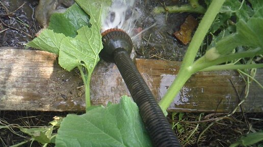 Размывание и обзор дополнительного укоренения на ветке тыквы сорта "Голиаф"
