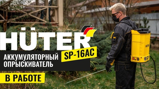 Опрыскиватель аккумуляторный Huter SP-16AC в работе