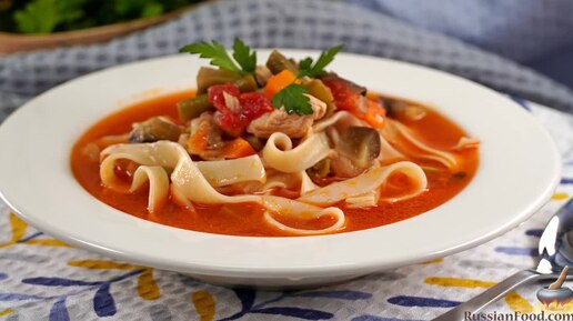 Сочные овощи и нежное мясо. Лагман с баклажанами