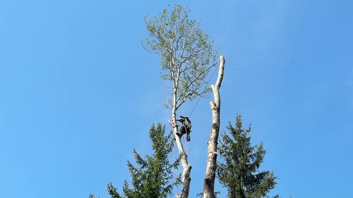 Спил высоких деревьев по частям с завешиванием | Спил макушки дерева | Компания «МосАрбоПро»