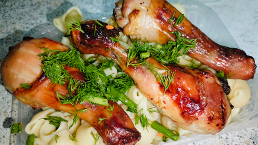 Куриная голень в медово-горчичном соусе.