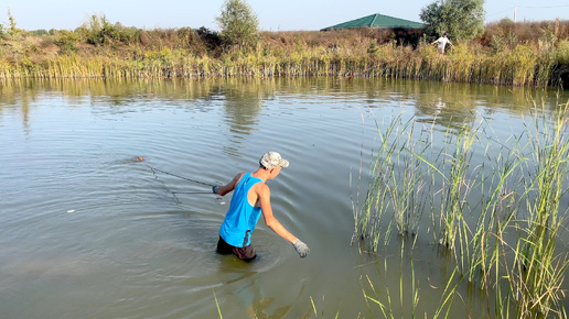 Учимся ловить рыбу в своем пруду бреднем, перекрасил баню, пересадил малину