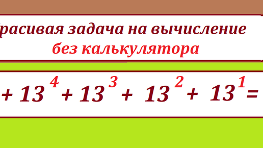 Задача на вычисление выражения со степенями числа 13 без калькулятора. 13^5 + 13^4 + 13^3 + 13^2 + 13