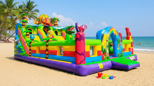 Коммерческий надувной батут "Хамелеон и динозавры" 12*7*6 м
