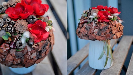 Осенний грибочек из кофейного стаканчика и природных материалов / DIY TSVORIC