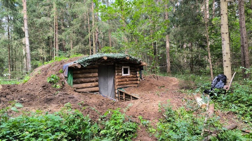 Вернулся в ОГРОМНУЮ ЗЕМЛЯНКУ в ДИКОМ ЛЕСУ. Продолжаю строительство. Окно и стол.