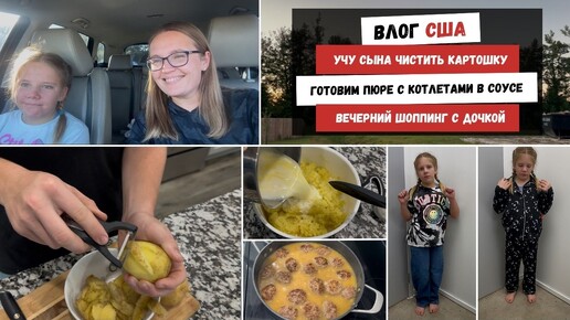 Учу Сына Чистить Картошку | Готовим Пюре с Котлетами в Соусе | Вечерний Шоппинг с Дочкой
