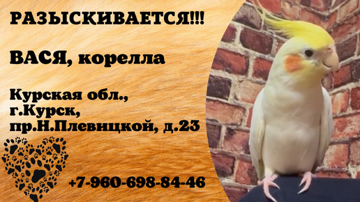 Пропал попугай! ВАСЯ. Корелла. Курская обл, г. Курск