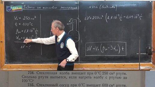 Задача на определение объема вылившейся ртути при нагреве ее до 100 градусов