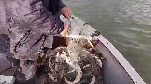 Изъятие сети со стерлядкой у браконьеров