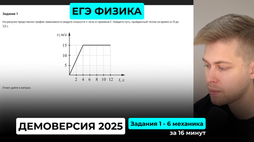 Подготовка к ЕГЭ 2026. Демоверсия ЕГЭ по физике 2025. Задания 1 - 6 (механика) за 16 минут