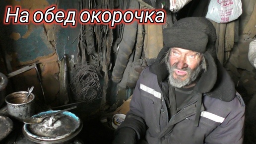 Дед отшельник готовит обед