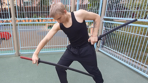 Обучение японскому фехтованию катаной - приемы баттодо на улице в школе кендзюцу Katana Club