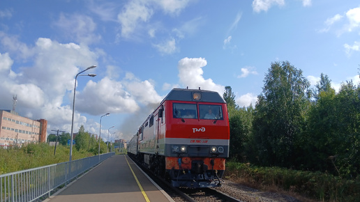 ТЭП70БС-348 со спец. поездом Начальника Северной железной дороги летит по перегону Човью-Койты