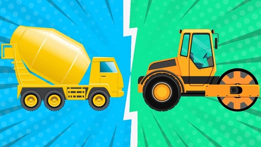 Угадай Машинку по половинке - Бетономешалка и Каток - Строительные машинки. Мультики для детей