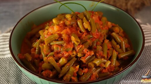 Вкус солнца и зелени. Тушёная стручковая фасоль в томате