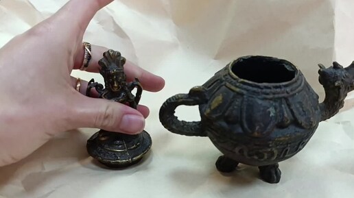 Редкая старинная курильца/пепельница Будда на драконе Китай, 19 век. Мы вредные привычки не поощряем - использовали конфетку) 🍬