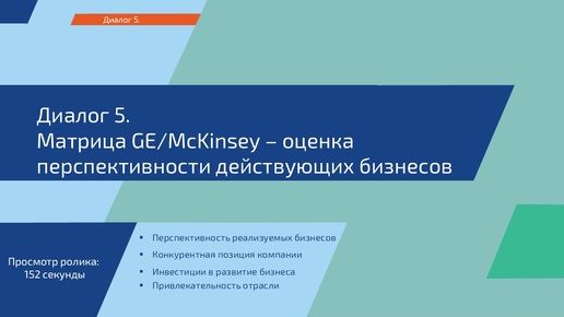 Разработка корпоративной стратегии. Диалог 5. Матрица GE/McKinsey - оценка перспективности действующих бизнесов