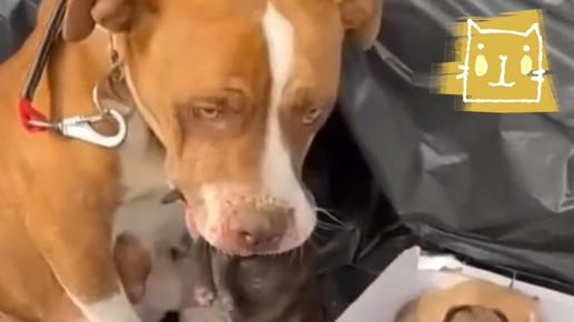 Волонтеры спасли только что родившую самку питбуля и ее щенков